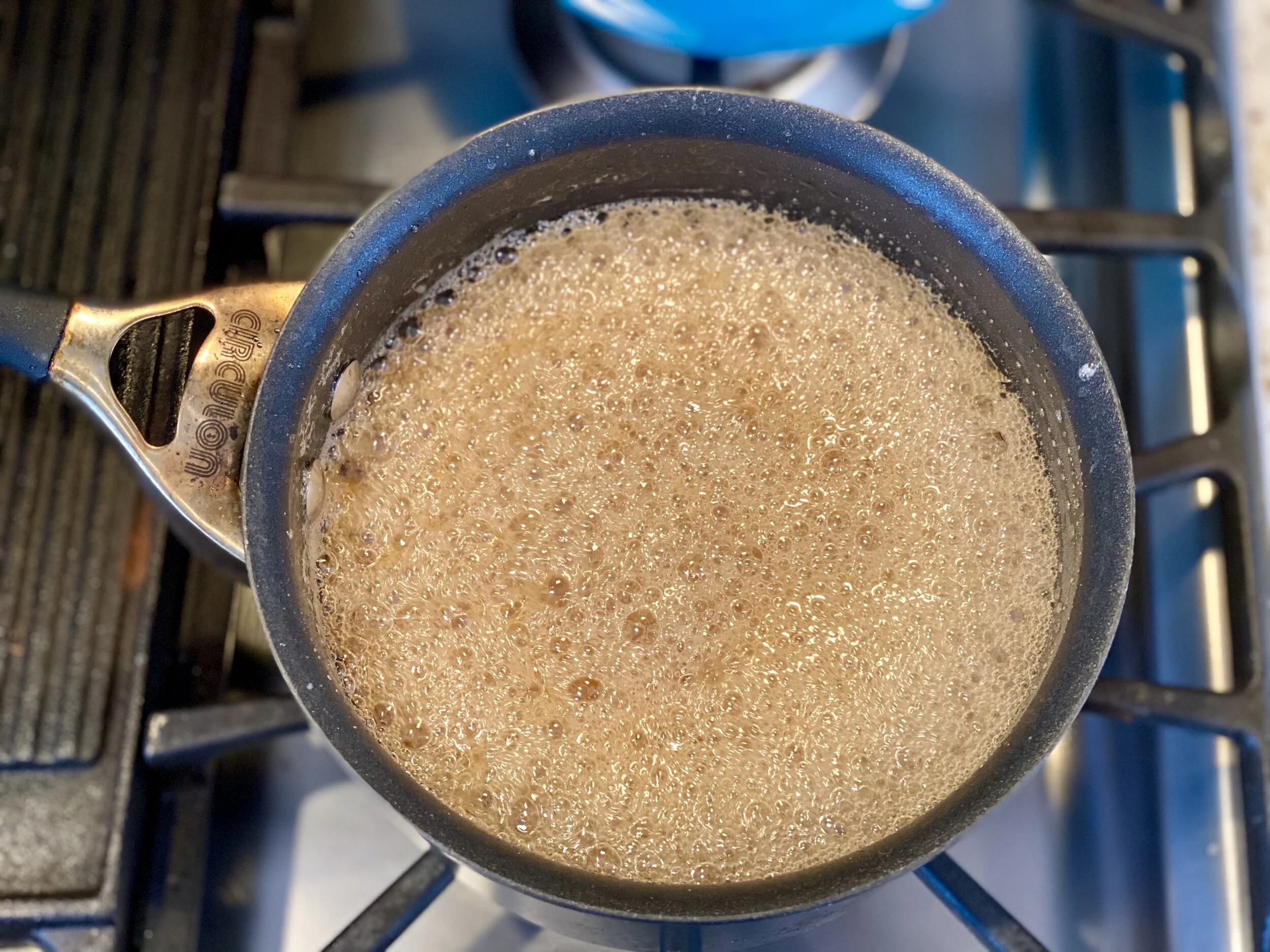 Increase heat to high & bring to boil. Stop stirring completely. Continue to boil until deep amber, about 8-10 minutes.