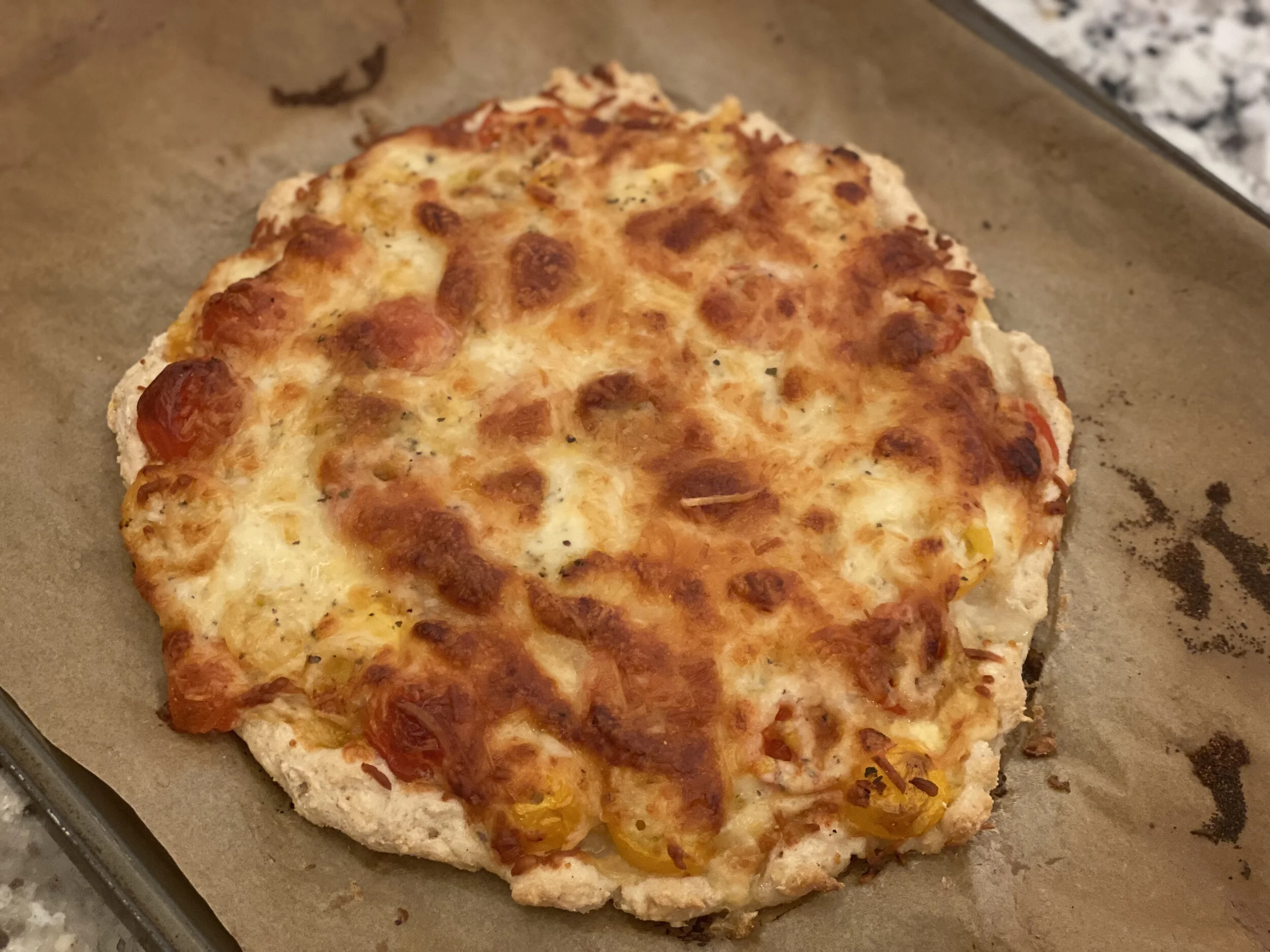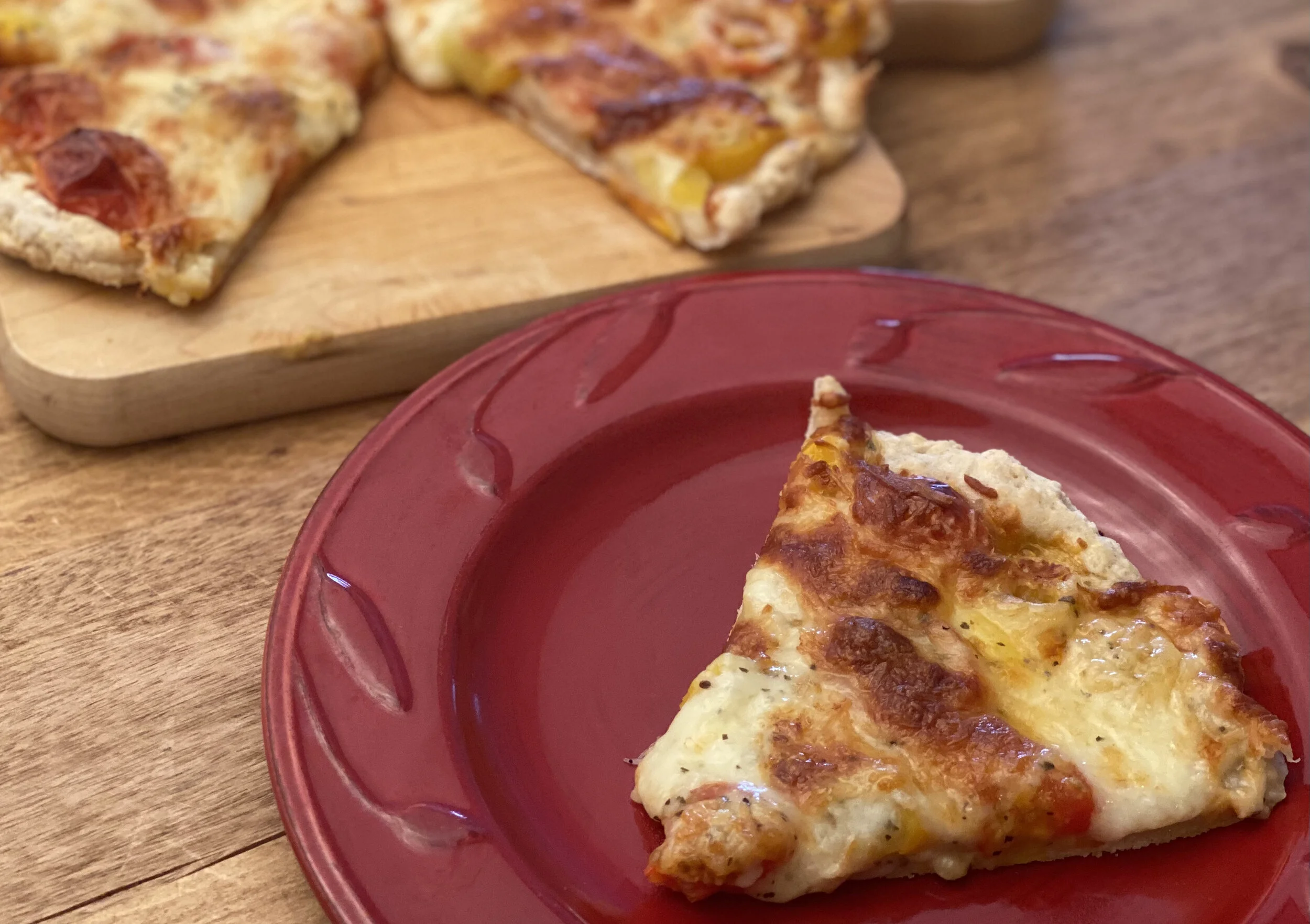 This is the easiest GF thin pizza crust recipe I have found & it has a great texture! If I’m making pizza just for myself, the recipe is easy to cut in half. It is a large individual size crust.