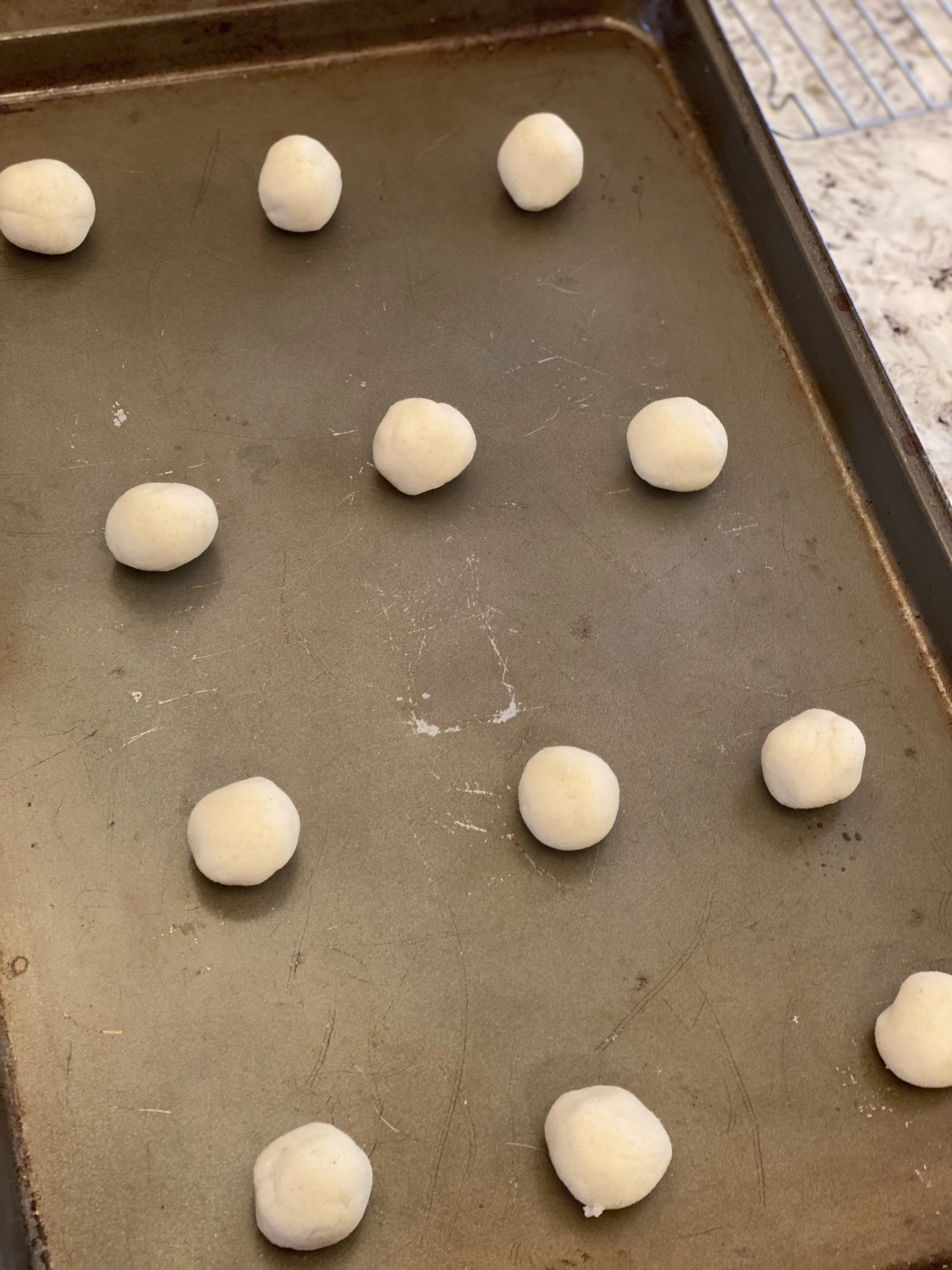 Roll dough into small balls (about a teaspoon or so) & place on ungreased baking sheet or baking sheet lined with parchment paper.